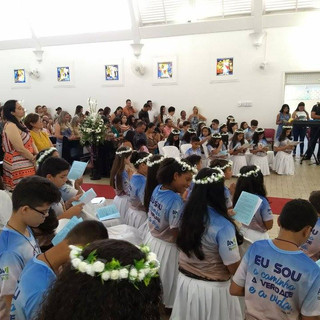 "A Tua Palavra é lâmpada que ilumina os meus passos e luz que clareia o meu caminho". Foi realizada na Capela do Colégio AFI a Primeira Eucaristia 2017, um momento de extrema emoção e cheia de bênçãos que contou com a presença dos pais, amigos, coordenação e diretoria do Colégio AFI para celebrar este dia único de seus alunos vivenciando uma experiência cristã inesquecível da comunhão com Cristo.