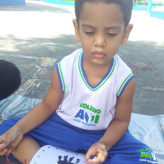 Na Educação Infantil, nossos pequeninos das turminhas de 2 e 3 anos Matutino e Vespertino na hora da tinta, uma atividade sensorial de descobertas lúdicas. A criança realiza movimentos mais precisos, delicados e desenvolve habilidades que a acompanharão por toda vida. Atividades sensoriais com a turminha de 3 anos da Tia Fabi, da Educação Infantil, turno vespertino.