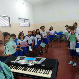 Aulas de música com Tio Walisson. As turmas da Educação Infantil e Ensino Fundamental desenvolvendo habilidades sensoriais, trabalhando coordenação motora grossa e fina. O primeiro dia das aulas de música foi assim; curiosidade, alegria, diversão e muita animação.