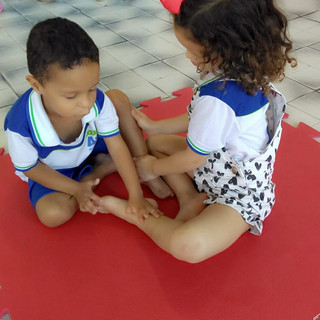Semana da amizade: a turminha de 02 e 03 anos da Educação Infantil proporcionou ao amiguinho uma massagem, onde além de relaxante, proporcionou um momento de interação, cuidado e muito amor.