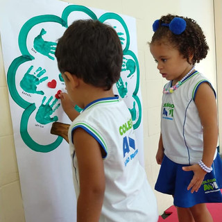 A turminha de 4 anos da Educação Infantil participou da oficina de arte, onde exercitou e brincou com a cor verde e a letra O. Desenvolvendo a arte e as habilidades com a coordenação motora fina.